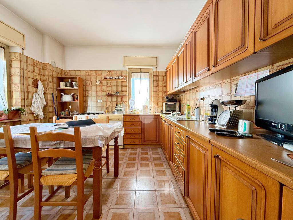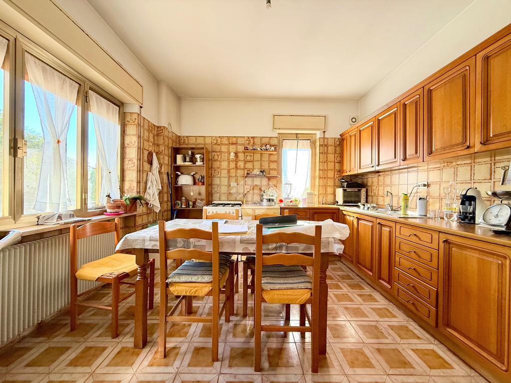 All’ingresso ci accoglie un ampio salotto, ideale per rilassarsi in famiglia o ospitare amici in un ambiente caldo e conviviale. La cucina adiacente, spaziosa e funzionale, è perfetta per chi ama cucinare e condividere momenti speciali attorno alla tavola.