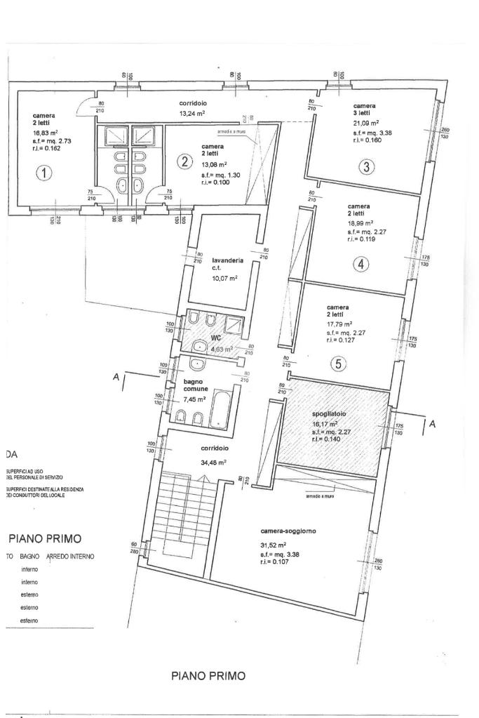 Al piano superiore si sviluppa la zona dedicata al pernottamento, composta da sette camere da letto, due delle quali dotate di bagno privato; le restanti camere sono servite da due bagni comuni, oltre a una pratica zona lavanderia, rendendo la struttura ideale anche per attività ricettive.