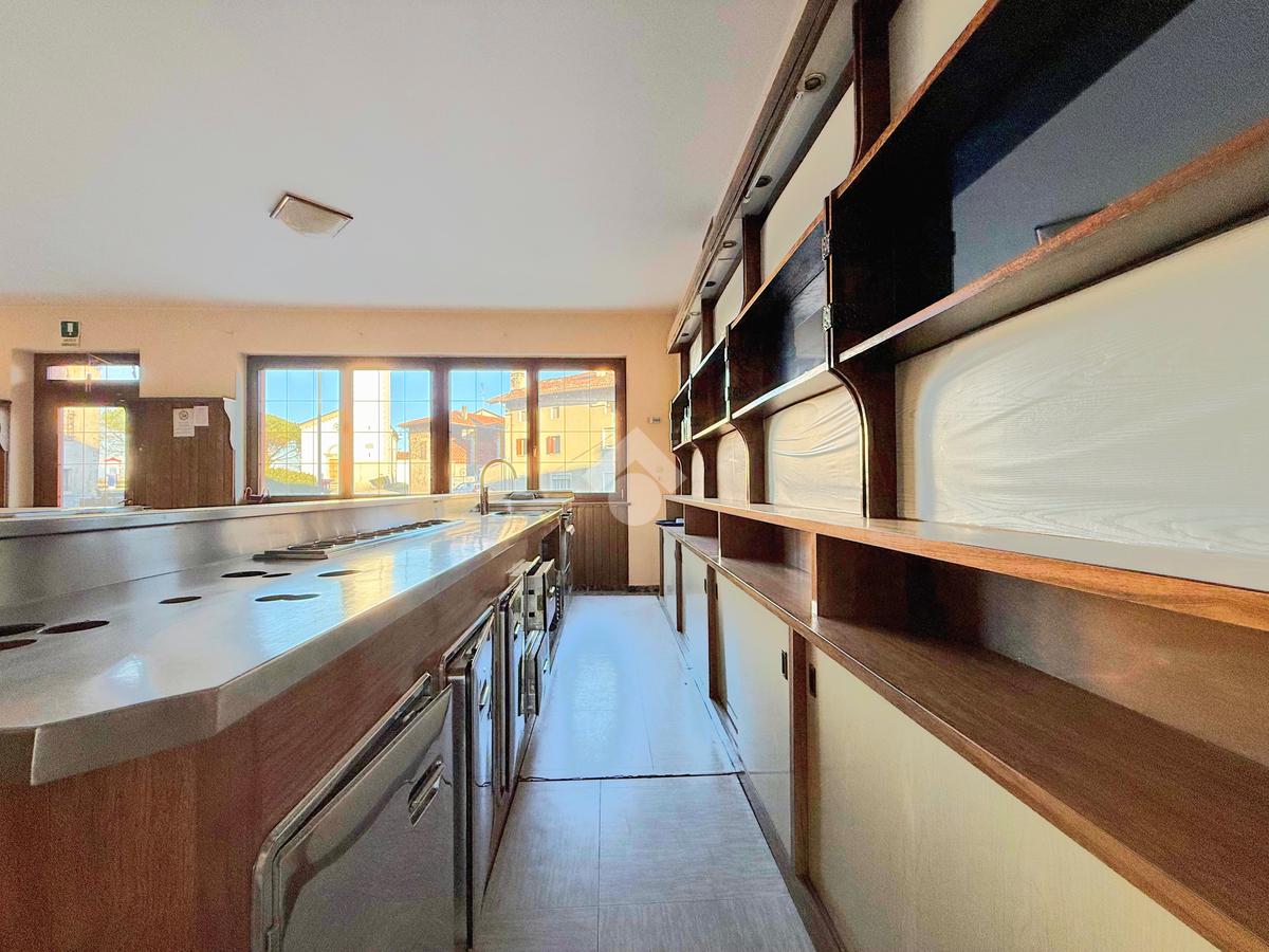 Completano il piano i servizi igienici per la clientela e una cucina professionale completamente attrezzata, progettata per garantire efficienza e funzionalità.