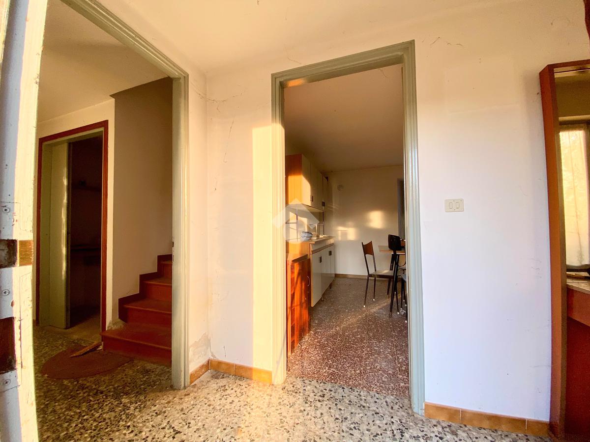L’accesso all’immobile avviene comodamente tramite passo carraio e portoncino pedonale fronte strada. Varcata la soglia, sulla destra si apre l’ingresso principale che conduce a un disimpegno accogliente, arricchito da una pratica dispensa, ideale come spazio di servizio. Proseguendo, sempre sulla destra, si sviluppa un corridoio che accompagna alla zona giorno, dove troviamo un soggiorno piacevole e luminoso, ben separato dalla cucina, funzionale e facilmente organizzabile secondo le proprie esigenze.